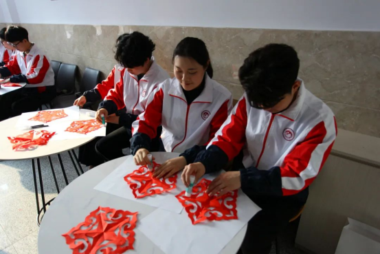 在“指尖传薪”实践环节,学生讲解员将剪纸艺术与学校特色深度融合,指导师生创作“红心向党”主题剪纸作品,师生团队更以学校标志性主楼建筑为蓝本,通过集体创作完成大型剪纸作品《工大剪韵》,并将“爱国敬业,求实创新”的校训篆刻于作品核心位置,以指尖技艺传承校训精神,形成兼具艺术价值与教育意义的集体成果。活动现场,传统非遗与现代校园文化碰撞出独特火花,展现了“艺术+非遗”的无限创意。