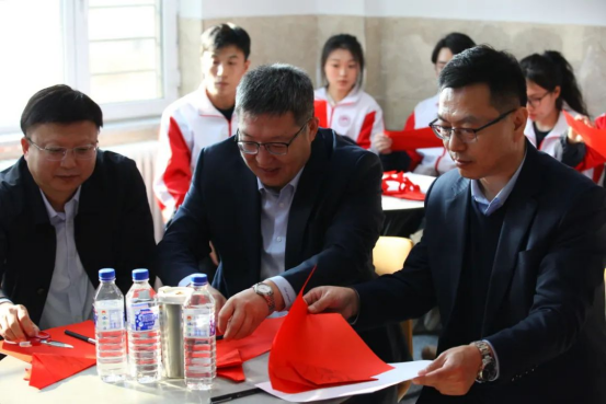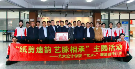 本网讯(通讯员:孙畅)湖畔艺剪传薪火,非遗纸韵续华章。4月8日,艺术设计学院在北湖校区东区湖畔“一站式”学生社区举办“纸剪遗韵,艺脉相承”主题活动。学校党委副书记吴成章出席活动,党委学生工作部部长仲崇利、党委研究生工作部部长孙兆龙、学生工作处副处长周巍、学院党委书记曹永利、院长葛英颖、党委副书记楚玉彪、团委书记侯天放及学院学生代表共同参与,以非遗剪纸艺术为媒,共筑红色文化传承与校园美育融合的实践新场景。